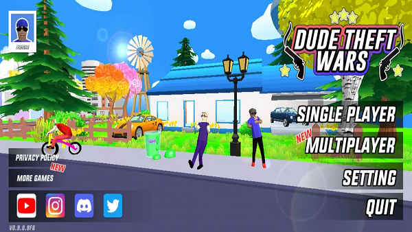 沙雕模拟器(Dude Theft Wars)是一款开放世界沙盒模拟趣味手游,也叫做“开放世界沙盒模拟器”,整个游戏画面采用了动漫的风格,整体看起来还是比较的舒适,给你完美的视觉体验。游戏自由度非常的高,玩家不仅可以自由的收集武器、资源,而且还可以在各种场景地图上进行开车,游戏地图和场景的设计别出心裁,海量的地图可供玩家选择发挥,给你足够的空间。除此之外,在沙雕模拟器中还有着各种精彩绝伦的副本玩法,因为副本是资源的主要获取来源,所以玩家们多下副本就能够快速的积攒资源,探索各种隐藏的剧情和冒险挑战,并利用资源打造个性化的领地!