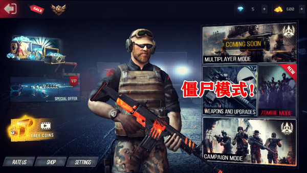 5.化身特种战士,挥舞武器消灭敌人,灵活战斗,精彩纷呈!