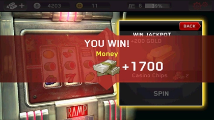 另外,死亡扳机里还有一个老虎机的系统,当然是需要消耗筹码的啦,筹码可以用金币购买,不过一开始游戏是会赠送几个让屌丝们过过瘾的。奖励的话呢,有游戏币、医疗箱等等,小编这里还木有统计出老虎机里具体都有啥,不过呢,应该不会让你失望的,当然嘛,还是靠运气的啦,这就等各位玩家去体验总结了。