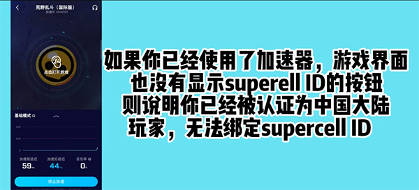 2、如果你已经使用了加速器,游戏界面也没有显示superell ID的按钮,则说明你已经被认证为中国大陆玩家,无法绑定supercell ID;