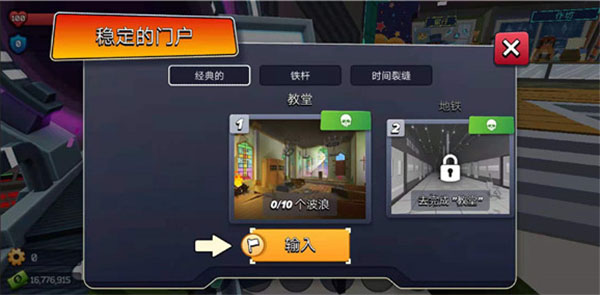 3、点击屏幕左侧功能键,可在门口加固木板,利用远程攻击优势阻挡并消灭逐步逼近的僵尸;