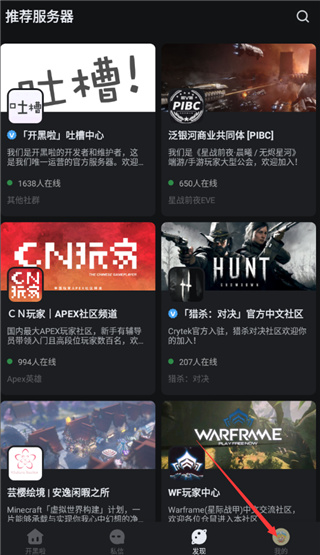 1、打开这款开黑啦app,在首页中点击“我的”;