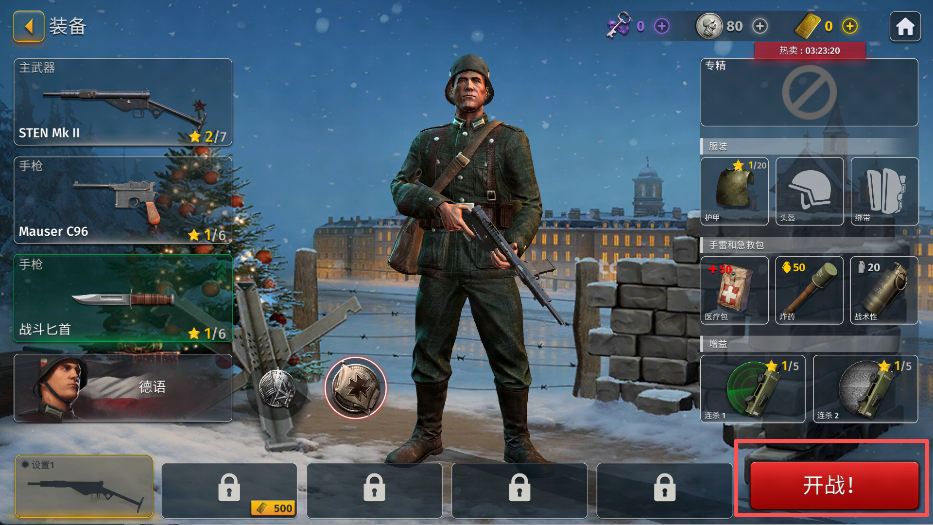 完成主武器、手枪、近战武器和护甲的配置后,点击“开战”按钮,进入诺曼底团队死斗战场,准备开始激烈的战斗。