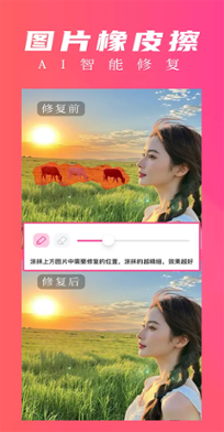 4、批量水印,自由裁图功能。可以一次处理最多100张图片,包括加水印、免费在线水印模板,相册上传水印,打标签、贴纸、写文字、剪裁、画笔、箭头、圈框等常用功能