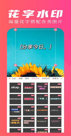 1、视频水印,包括视频加文字、加水印图标、做MV特效、美颜拍摄、剪裁、滤镜、动图贴纸、音乐